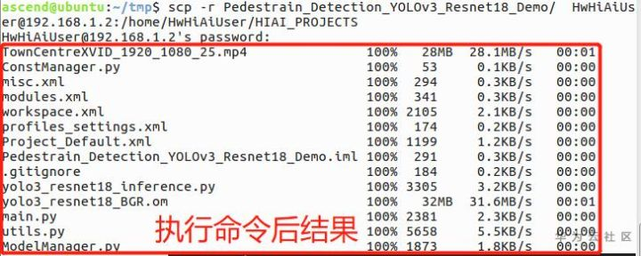 scp -r Pedestrain_Detection_YOLOv3_Resnet18_Demo/ HwHiAiUser@192.168.1.2:/home/HwHiAiUser/HIAI_PROJECTS