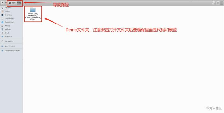 scp -r HwHiAiUser@192.168.1.2:/home/HwHiAiUser/HIAI_PROJECTS/Pedestrain_Detection_YOLOv3_Resnet18_Demo/output_image /home/ascend/tmp好了,你可以到刚才存放Demo的tmp文件夹下查看了。