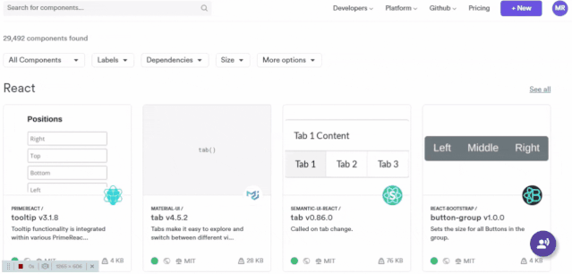 在 Bit.dev 上不仅可以搜索组件,还可以直接查看组件的依赖,浏览组件的代码,甚至在线编辑代码并查看预览效果!选好组件后可以通过 Bit.dev 的命令行工具 bit 在本地项目引入组件,也可以通过 npm、yarn 引入组件。