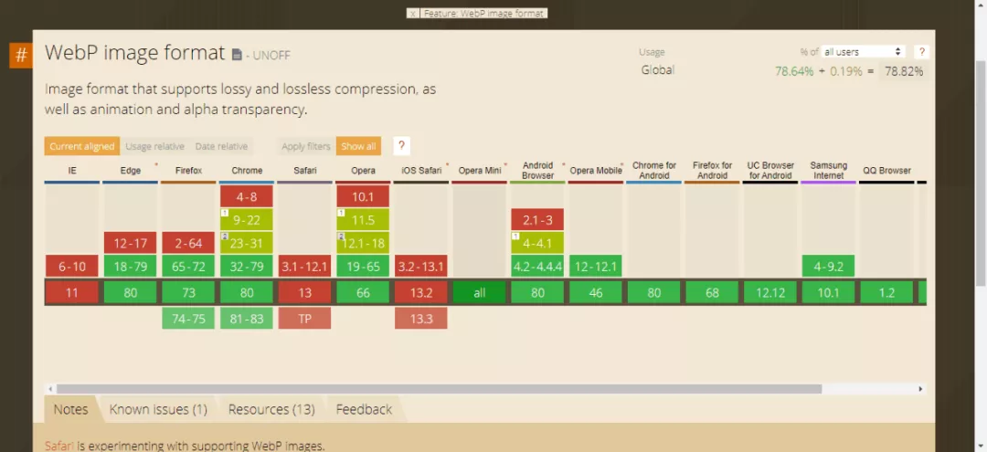 我们来看一个例子吧。哪些浏览器支持 WebP 图像格式?