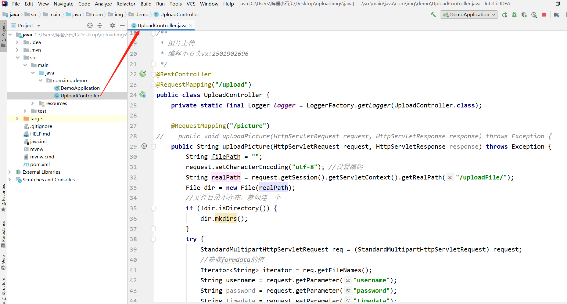 先来看后台代码目录,后台代码很简单,就是一个UploadController