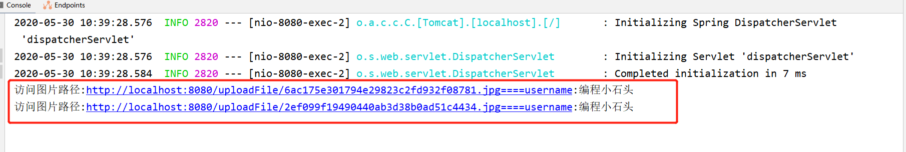 通过上图可以看出,Java后台返回了对应的图片url给前端,并且可以拿到小程序前端传的用户名。 我这里把完整的代码贴给大家。