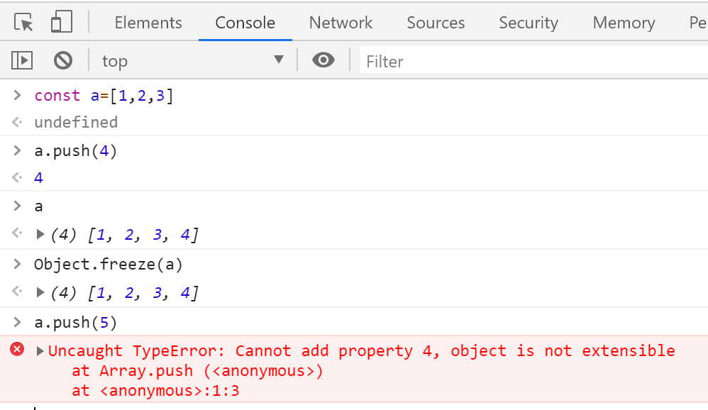 《Object.freeze》 aq82041 2020-05-30 297 阅读1分钟 冻结,使它的地址和内容都不会被改变 如果一个数组被声明成常量,还是可以给它添加元素的。但是被冻结之后,就连添加元素都不行了。
