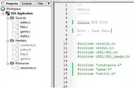在上图中,我们可以看到有两种类型的文件:一种是以 .h 结尾的,一种是以 .c 结尾的。