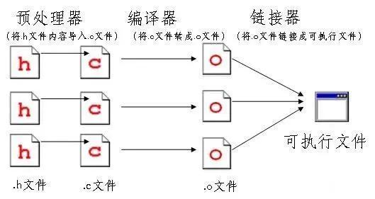 一个程序包含一个或多个 .c 文件(一般称为源文件,source file。当然,我们一般也把所有的高级语言代码叫做源代码)。通常来说,每个 .c 文件都有一个和它同名但不同扩展名的 .h 文件。.c 文件里面包含了函数的实际定义,而 .h 文件里包含函数的原型声明。
