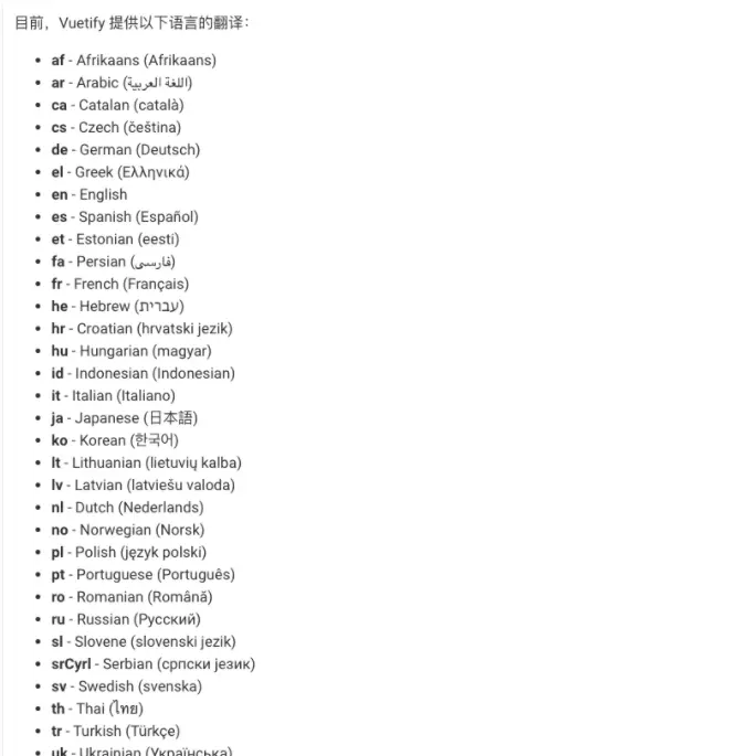 这时,又有一个命名的问题,我们的vue-i18n这个插件可以自己命名语言模版名,但是vuetify的语言名已经命名好了,无法更改的,如下: