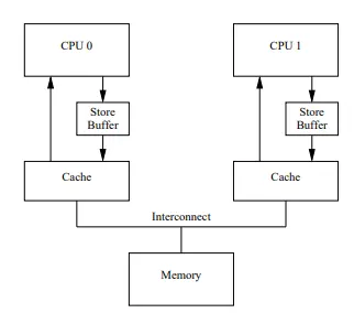 各CPU通过消息传递来更新各个缓存行的状态。在CPU中引入了Store Bufferes。