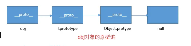 如图所示,f.prototype 的 proto 中保存的是 Object.prototype,Object.prototype 对象中也有 proto,而从输出结果看,Object.prototype.proto 是 null,表示 obj 对象原型链的终结。如下图所示: