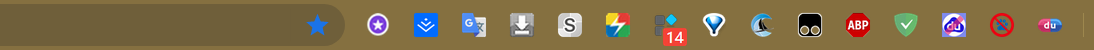 下图就是本人常用的一些插件,上部分是正在用的插件,是直接显示在地址栏后面;下部分是暂时不用的插件,需要用到时候,切换一下就阔以咯。