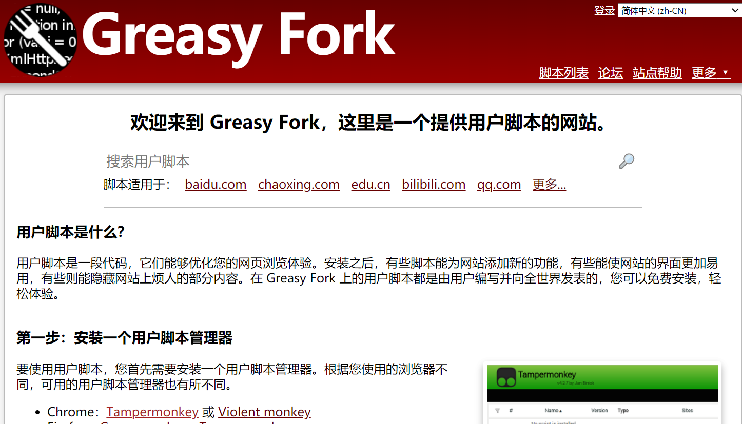 安装 Tampermonkey 之后,需要到 Greasy Fork 下载对应的脚本安装: