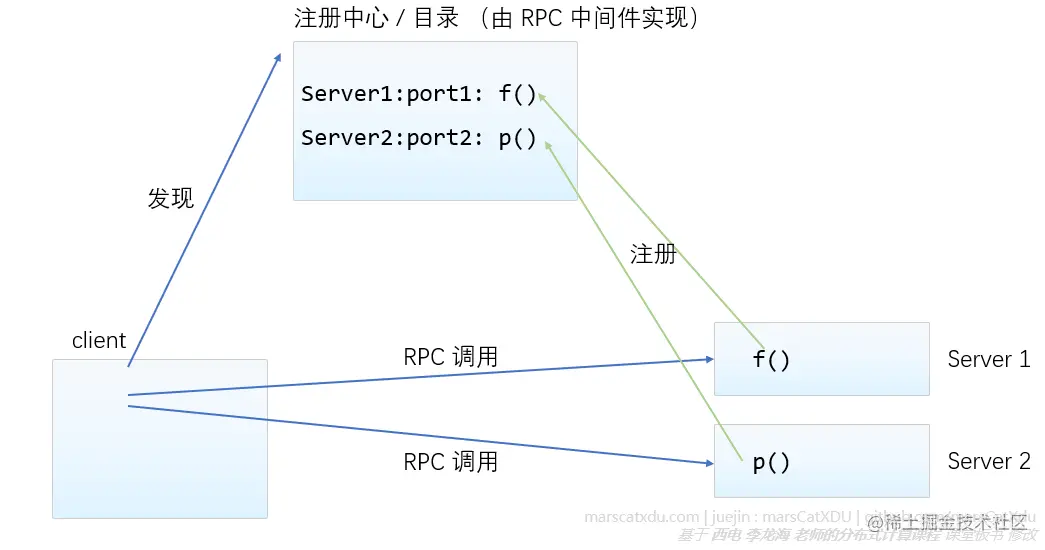 - client 可以在注册中心发现有哪些方法在哪些服务器上,再根据这个信息直接点对点进行 rpc call。(注册中心由 rpc 中间件实现)