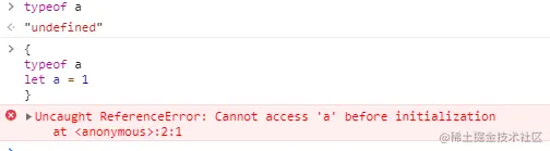 而且,当我们使用 typeof 时,若在暂时性死区内时,也会报错,所以 typeof 这个操作也不再百分百安全了。