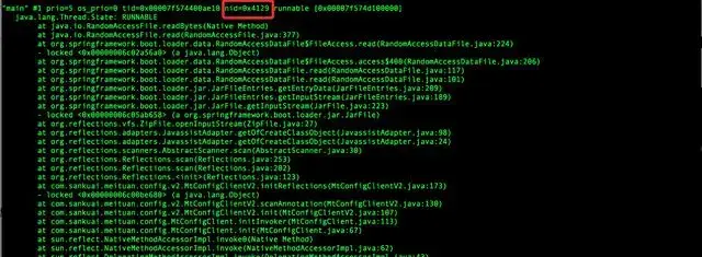 从内容上来看,像是解压后的JAR包信息。读取JAR包信息应该是在项目启动的时候,那么在项目启动之后使用strace作用就不是很大了。所以应该在项目启动的时候使用strace,而不是启动完成之后。