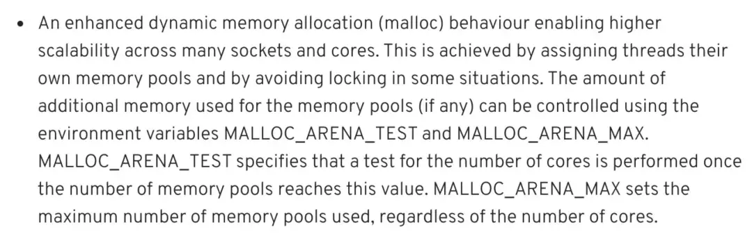 到此,基本上可以确定是内存分配器在捣鬼;搜索了一下glibc 64M,发现glibc从2.11开始对每个线程引入内存池(64位机器大小就是64M内存),原文如下: