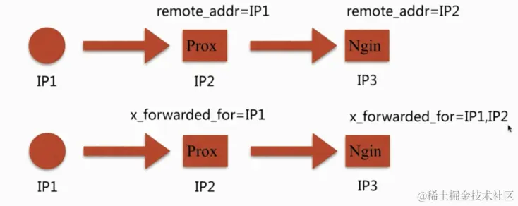 简称XFF头,它代表客户端,也就是HTTP的请求端真实的IP,只有在通过了HTTP 代理或者负载均衡服务器时才会添加该项,正如上面所述,当你使用了代理时,web服务器就不知道你的真实IP了,为了避免这个情况,代理服务器通常会增加一个叫做x_forwarded_for的头信息,把连接它的客户端IP(即你的上网机器IP)加到这个头信息里,这样就能保证网站的web服务器能获取到真实IP, 但是有风险,不能保证这个代理服务器不会篡改这个ip。 格式一般为: