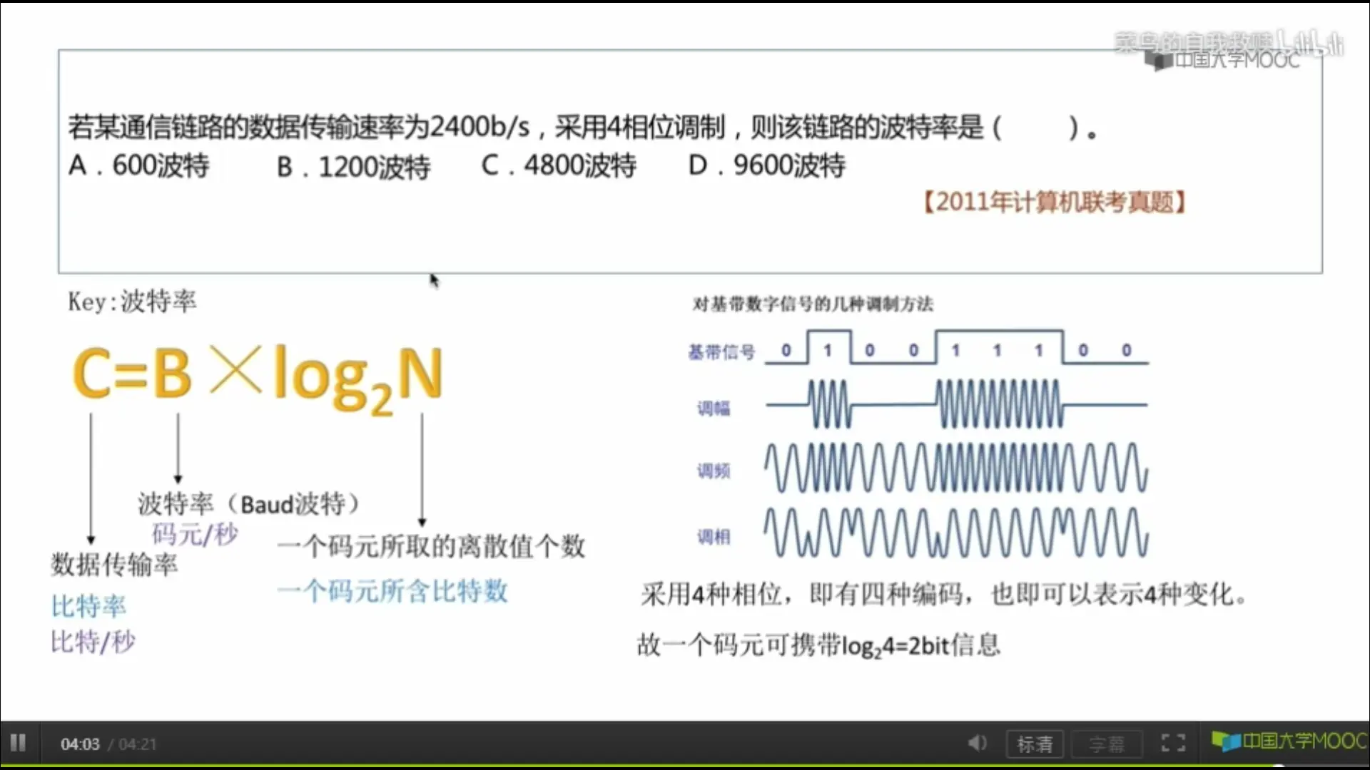 - 王道的网课,知识强化第二章物理层,通信基础03+通信基础04。