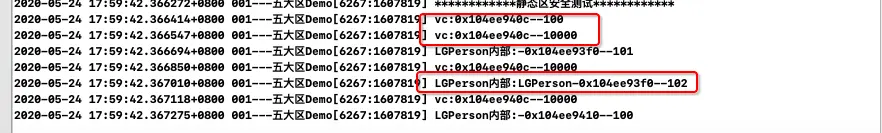 NSLog(@"LGPerson内部:%@-%p--%d",self,&personNum,personNum);
