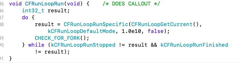 } while (kCFRunLoopRunStopped != result && kCFRunLoopRunFinished != result);