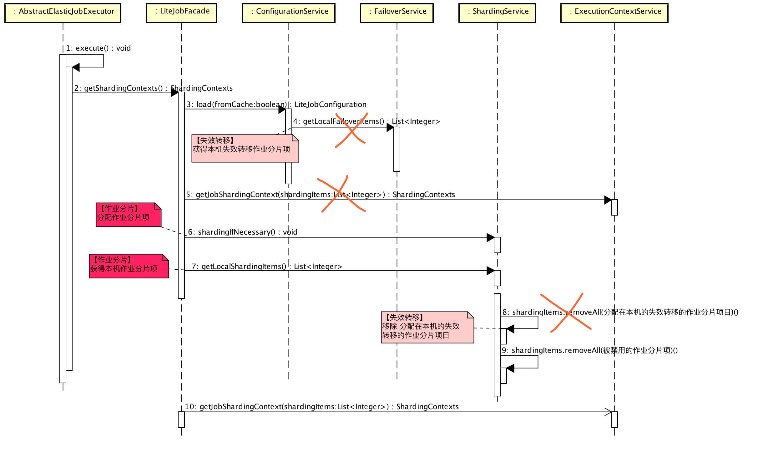 在《Elastic-Job-Lite 源码分析 —— 作业执行的》「4.2 获取当前作业服务器的分片上下文」中,我们可以看到作业执行器( AbstractElasticJobExecutor ) 执行作业时,会获取当前作业服务器的分片上下文进行执行。获取过程总体如下顺序图( 打开大图 ):