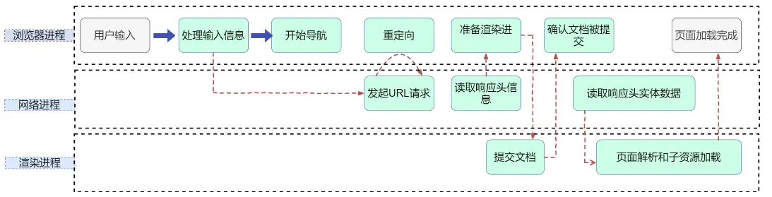 渲染进程收到浏览器进程的"提交文档"后,通过和网络进程使用"管道"的方式通信。一旦这些文档数据传输完成,渲染进程就会告诉浏览器进程"确认提交",此时浏览器进程收到"确认提交"就会更新地址栏的URL,历史状态等,这就是为什么当我们在地址栏输入地址信息后需要加载一小会儿到另一个页面。over