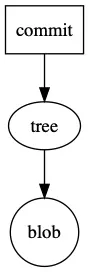 第一行表示这个commit对象指向的是哪一个tree对象,从这个tree对象出发,可以遍历仓库中直到本次提交为止、所有被Git追踪的文件。commit指向tree,tree可以指向blob也可以指向其它的tree,blob就像是树中的叶子节点,不再指向其它的对象,它们之间的关系如下图所示