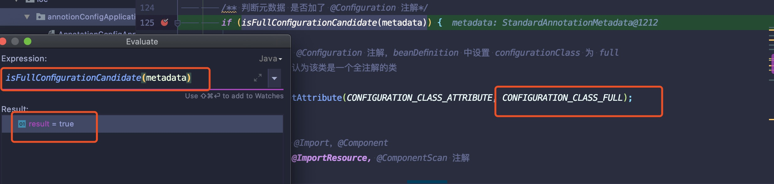 /** 判断元数据 是否加了 @Configuration 注解*/