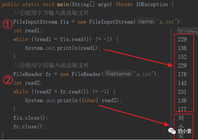①使用字节输入流读取文件