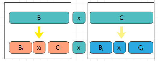 那么算法的重点实际上是如何确定x的位置,使得B部分都小于x,C部分都大于x。实现的方法如下所示。