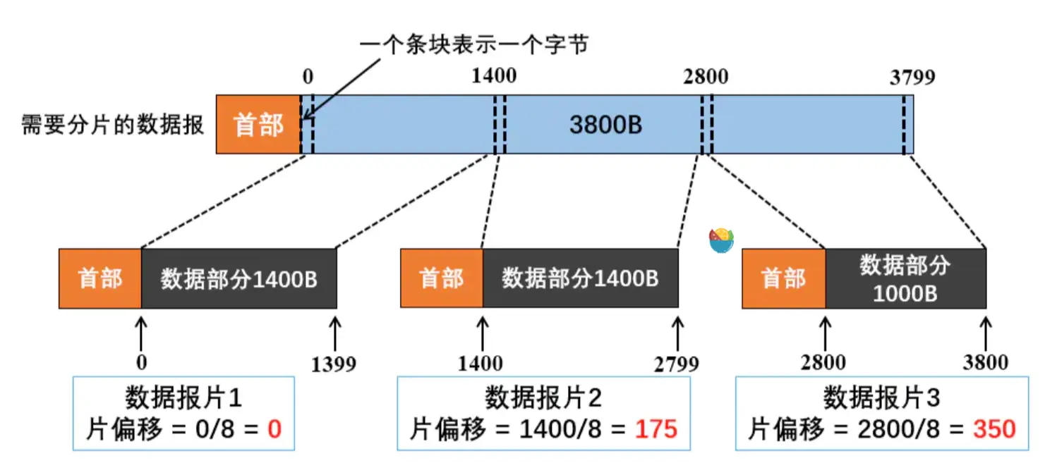 占13位,以8B为单位。其表示较长分组分片后,某一片在原分组中的相对位置,也就是说相对于用户数据字段的起点,该片从何处开始。这也就是说,除了最后一个分片,每个分片的长度一定是8B的整数倍。