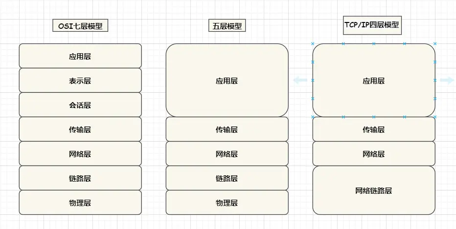 OSI七层模型和五层模型主要是提供一种处理问题的策略方案。而互联网中真正使用的则是TCP/IP四层模型,也是对于前两者的具体实现。