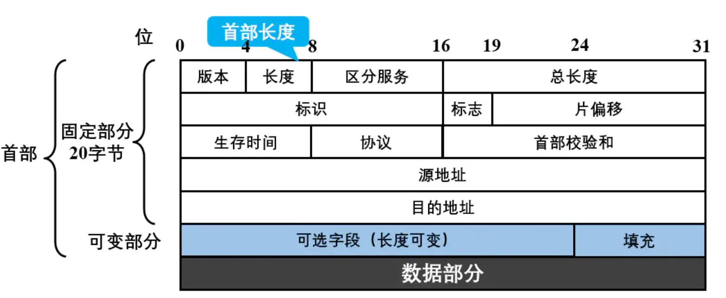 (1) 可选字段:长度可变,从1字节~40字节。可变部分是为了增加IP数据报的功能,如用来支持排错、测量以及安全等措施。 (2) 填充:IP数据报的首部长度必须是4B的整数倍,所以如果首部长度不满足4B整数倍时,就使用填充字段将首部填充到4B的整数倍。