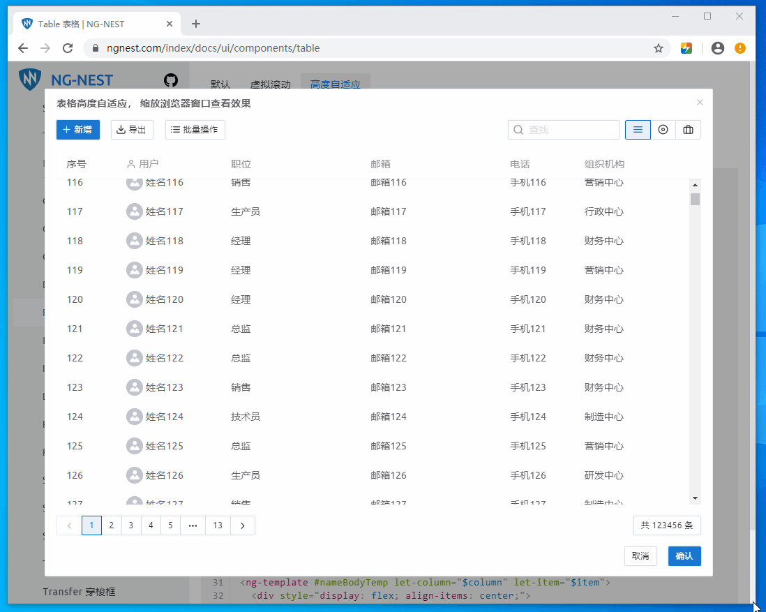 【表格】排序、查询、分页、分组、虚拟滚动、列固定、自适应高度等