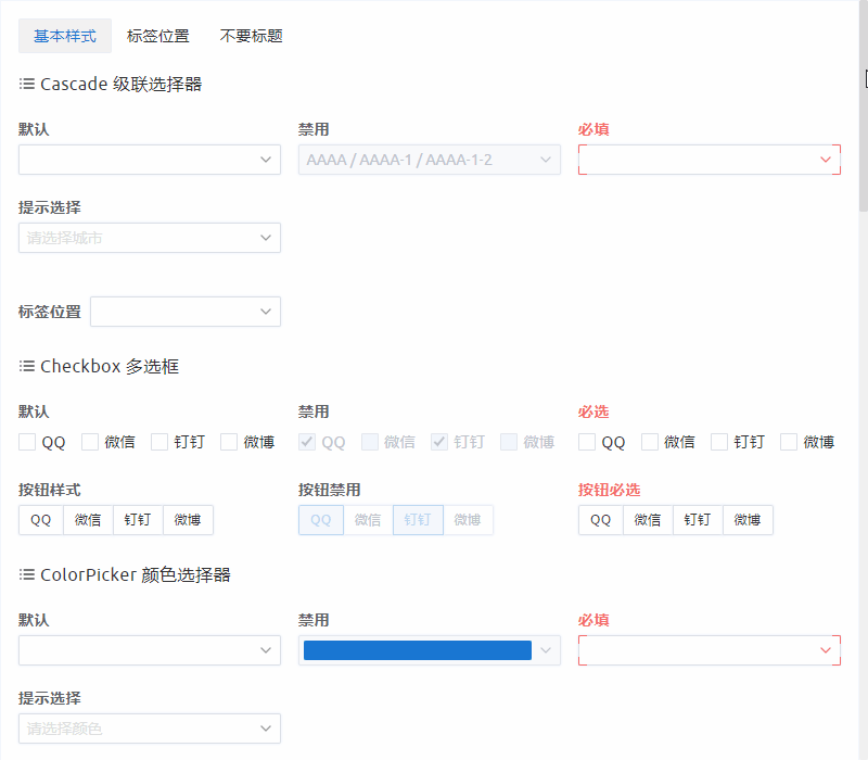 【表单】输入框、选择器、单选框、多选框、级联选择器、颜色选择器等