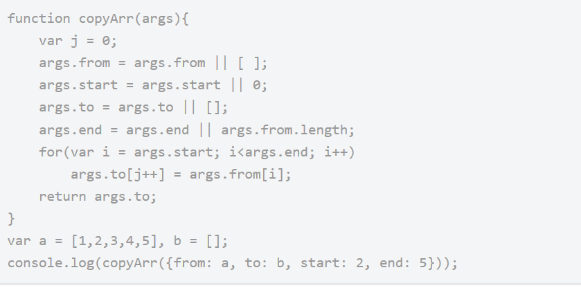 可以采用将对象作为实参,该对象的属性就是实际需要的实参值,并且参数的顺序就无关紧要了,而且还可以方便的设置缺省参数的默认值;作为实参的对象,一般采用键/值对的方式进行定义;如: