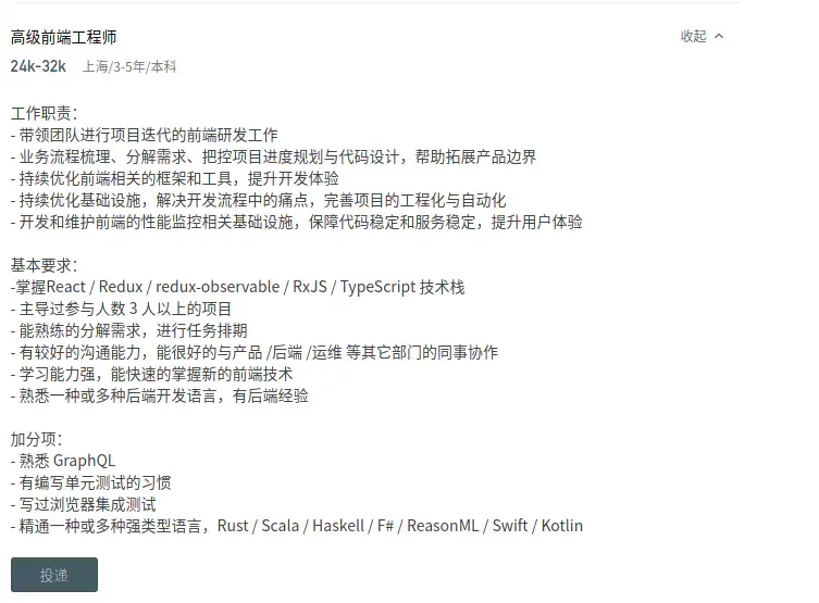 首先,在准备准备面试之前,一定要看一下招聘要求,确定一下面试单位使用的技术栈是什么,然后就需要为之而努力(不然你说我学习了几年angular,但是面试单位是用的react就很尴尬)。然后就说到面试的准备阶段了。那怎么准备呢,下面列举了面试的基本基本要求: