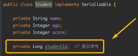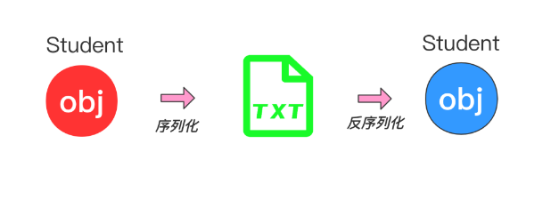 举个例子,假如我们要对Student类对象序列化到一个名为student.txt的文本文件中,然后再通过文本文件反序列化成Student类对象: