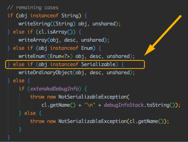 而且序列化机制从某种意义上来说也弥补了平台化的一些差异,毕竟转换后的字节流可以在其他平台上进行反序列化来恢复对象。