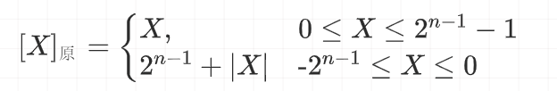数值X的原码记为,如果机器字长为n(即n个二进制位表示),则原码的定义如下: