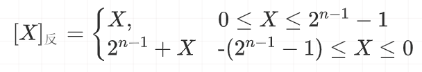 数值X的反码记为,如果机器字长为n,则反码的定义如下: