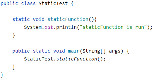 如上图所示,“staticFunction”是static修饰的静态方法,所以可以直接使用“类名.方法名”进行调用,这个调用其实就和之前咱们说的“类名.变量名”的调用方式,是一个道理。