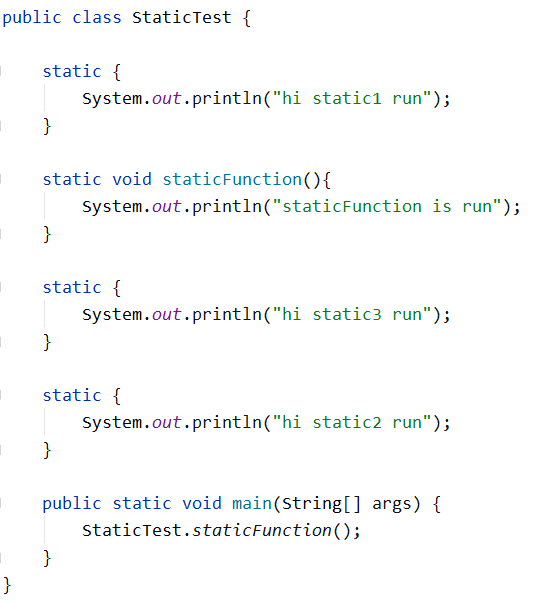 如上图代码和结果,可以看到static静态代码块可以有多个,可以放在任意位置,而且是在类加载的时候只执行一次,而且还是自上而下顺序执行。