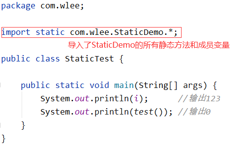 大家上看以上代码,首先我定义了一个类叫“StaticDemo”,其中我定义了静态变量“i”和静态方法“test”。然后我在第二个类“StaticTest”中,我利用“import static”的方式导入了“StaticDemo”的所有有关静态的变量和方法,然后我就可以直接进行调用了。看到这好像并没有特殊的地方,感觉就像多一此举,直接用“类名.变量”或者“类名.方法”不就行了,对你说的没错,我们这里只是讲什么是静态导入包。