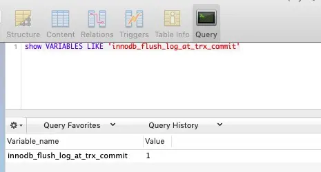 当设置为2的时候,每次提交都仅写入到os buffer,然后是每秒调用fsync()将os buffer中的日志写入到log file on disk。