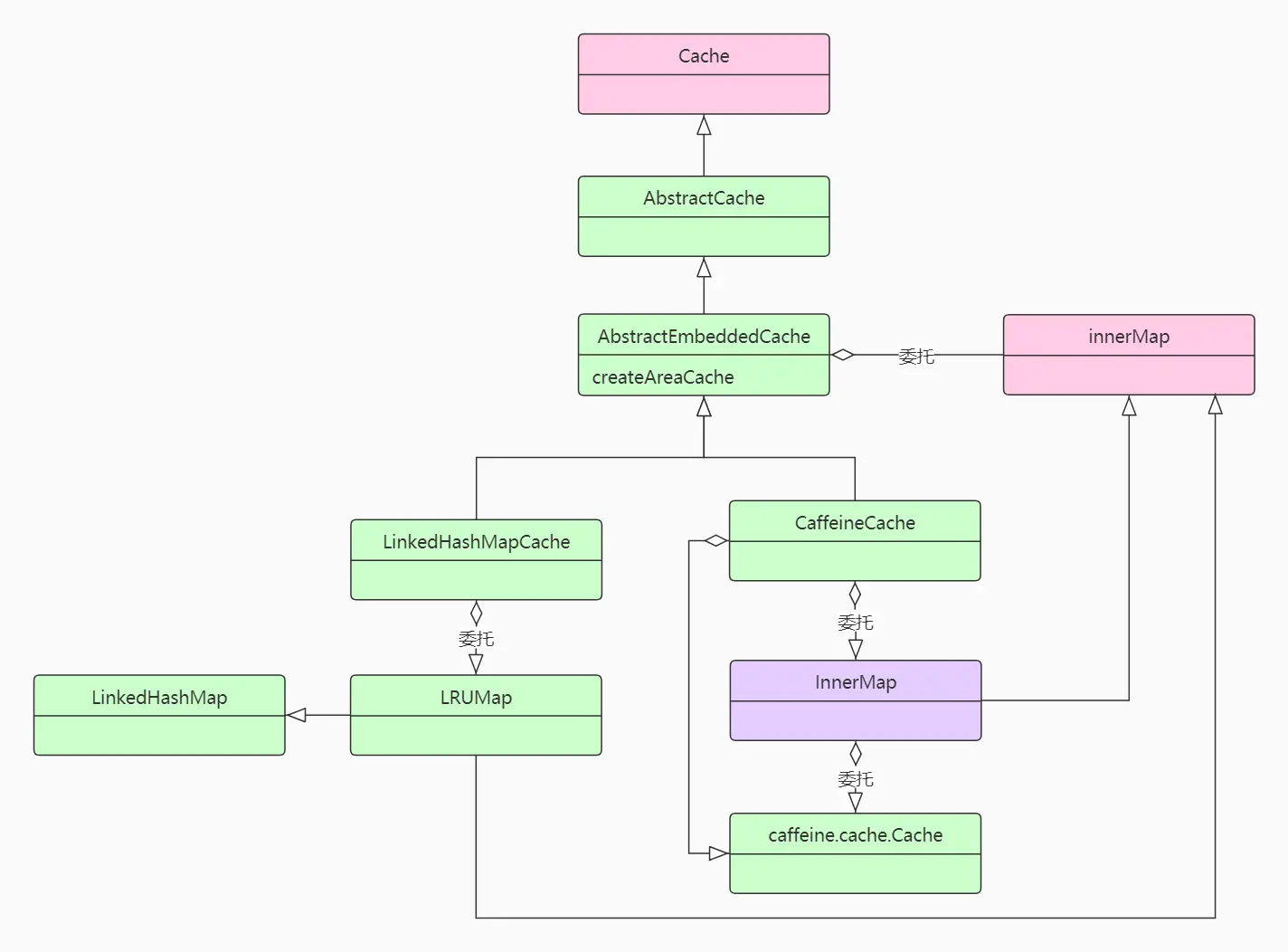 AbstractEmbeddedCache实现了一些公共方法,避免子类重复实现,并且采用模板模式,由子类完成变化点部分的实现。
