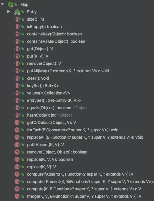 HashMap实现了Map接口,我们先来看看Map接口定义了哪些基础API。