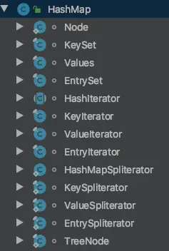 HashMap中内部类有如上几个,HashMap的存储数据结构基于Node和TreeNode,这两个内部类实现了Map接口的内部类。
