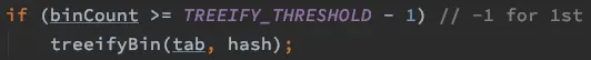 if (binCount >= TREEIFY_THRESHOLD - 1) // -1 for 1st