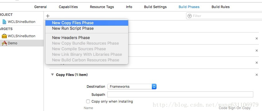 我们需要做的是将这个framework拷贝到项目里面才行,这样才能从根本上解决问题,在Target的General选项卡里, 选择EmbeddedBinaries选项, 将找不到的framework添加进来
