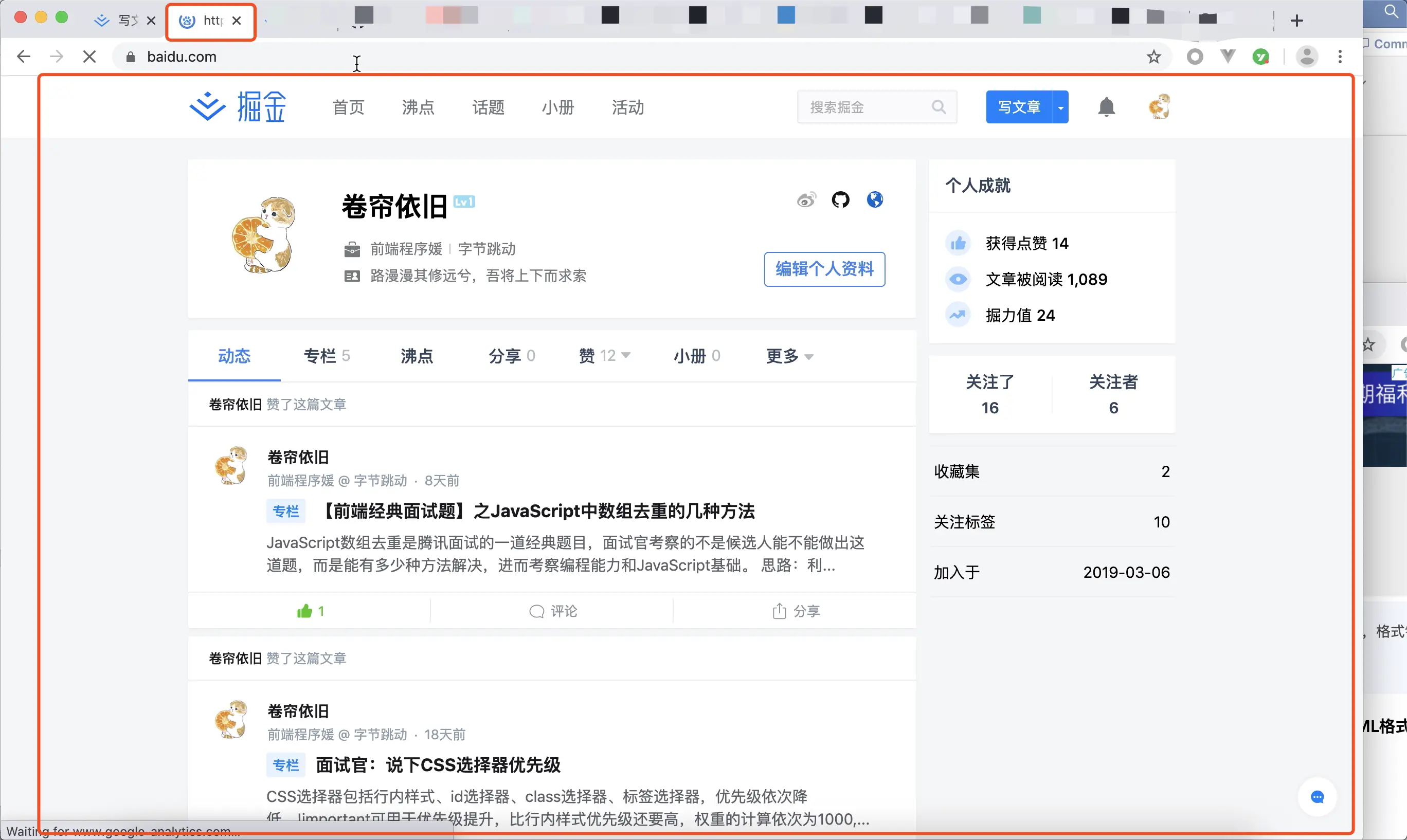 用户输入完毕并键入回车之后,浏览器就进入加载状态: