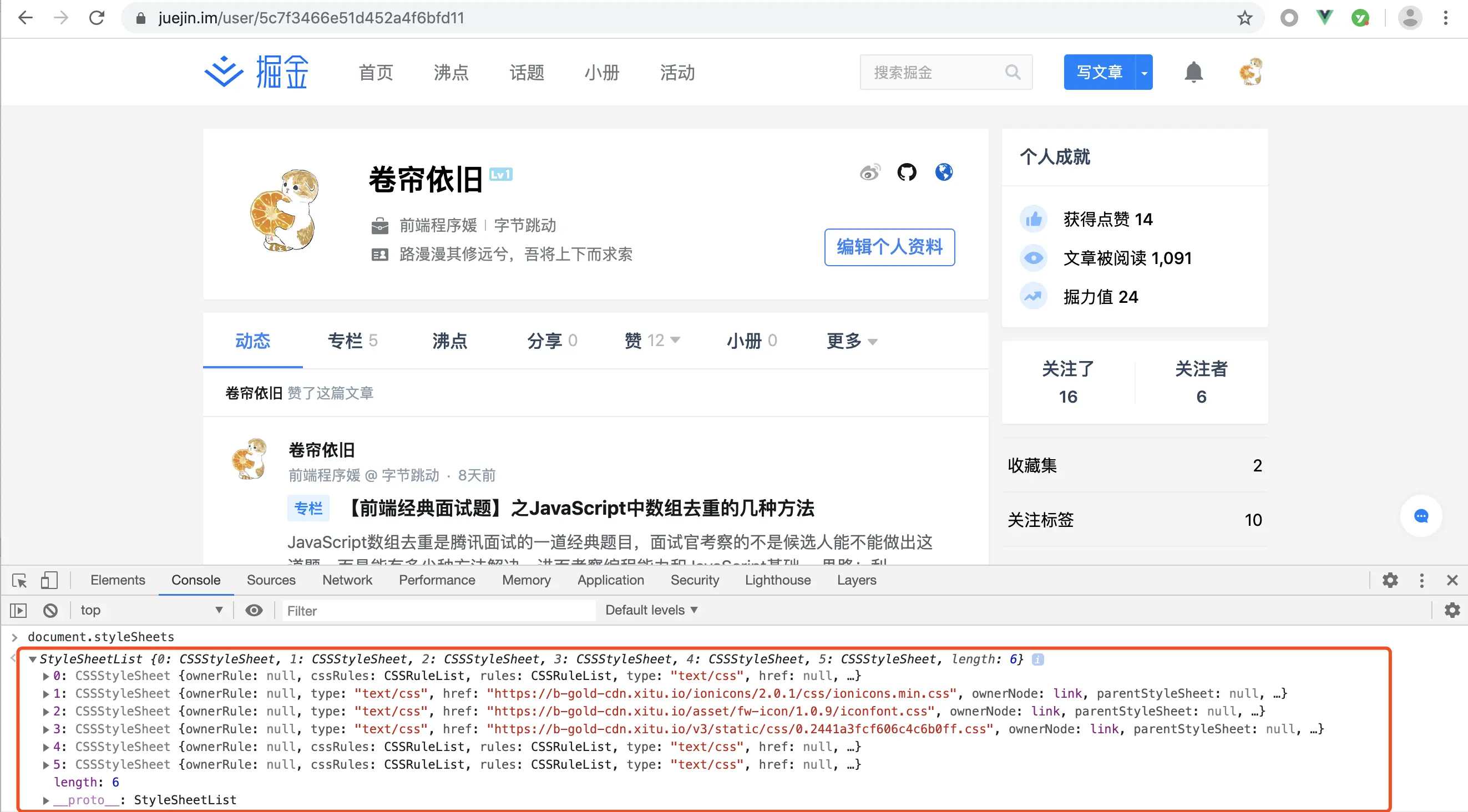 这个阶段的目的是计算出DOM节点中每个元素的具体样式,渲染引擎会将接收到 CSS 文本转换为浏览器可以理解的结构—— styleSheets,在Chrome控制台中查看其结构,可以看到下图所示的结构
